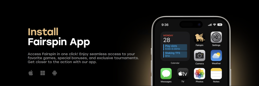 - Play: The Fairspin icon will appear on your dashboard. Tap it to access your 200% first deposit bonus instantly.