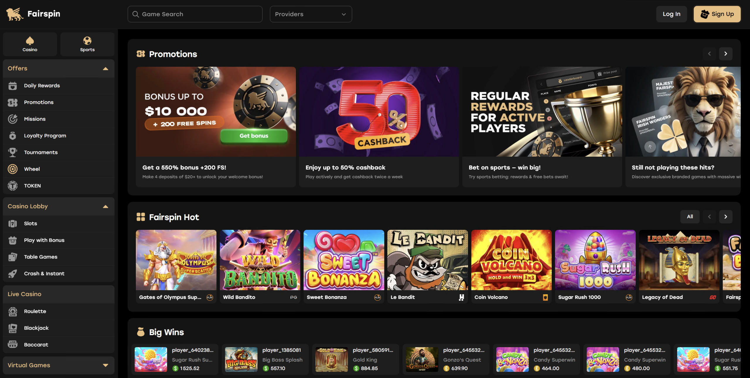 | Over 10,000 Games | Fairspin Casino features thousands of games, including the most popular slots, table games, and live casinos. |